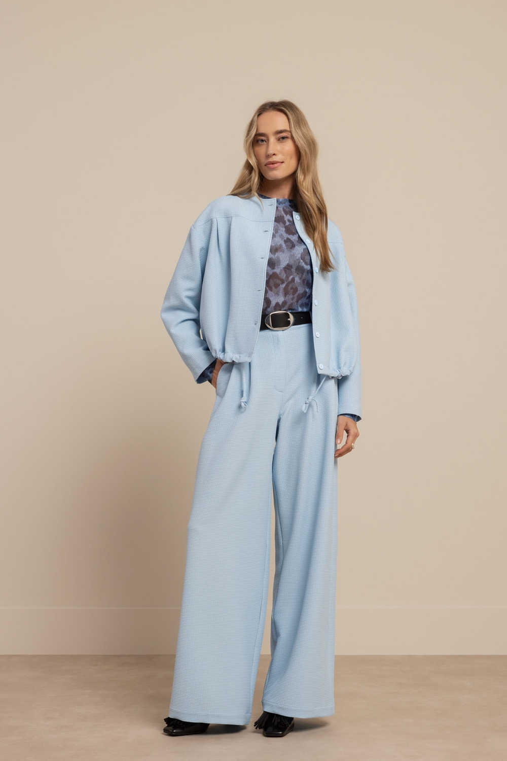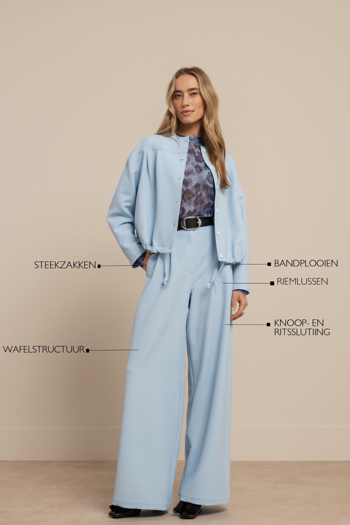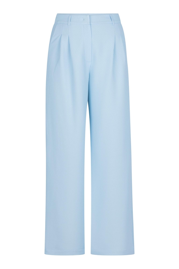 Maak kennis met de Skye waffle trousers van STUDIO ANNELOES, een stijlvolle toevoeging aan je zomergarderobe. Deze lichtblauwe broek is perfect voor een zonnige dag in de stad of een ontspannen weekendje weg.