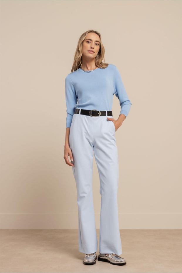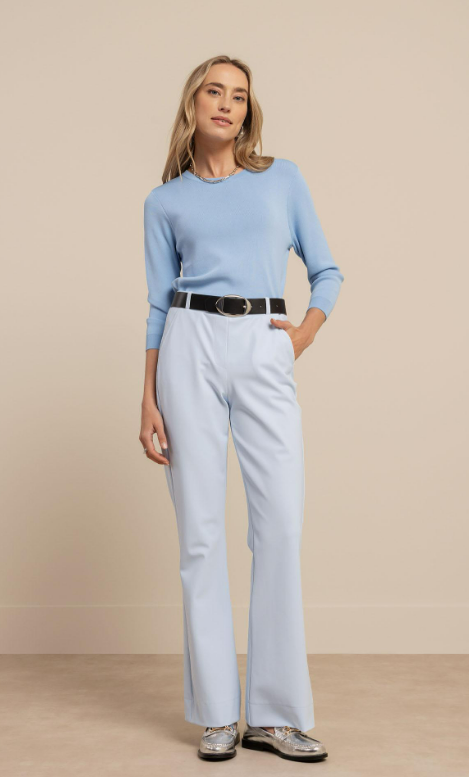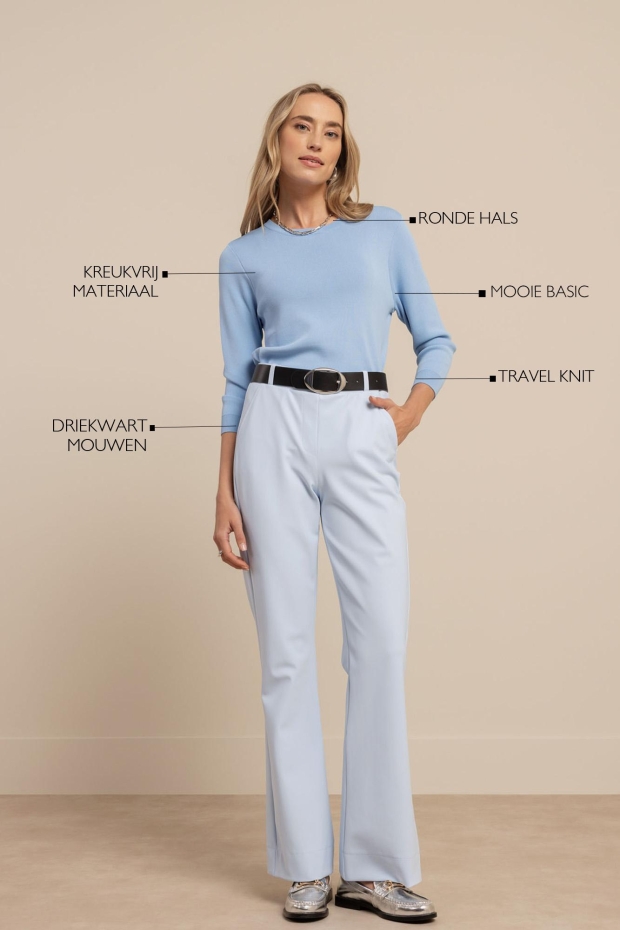 Maak kennis met de Luna 3/4 slv pullover van STUDIO ANNELOES. Deze lichtblauwe trui met korte mouwen is perfect voor de Nederlandse zomerdagen. De frisse pastel blauwe kleur voegt een vleugje elegantie toe aan je garderobe.