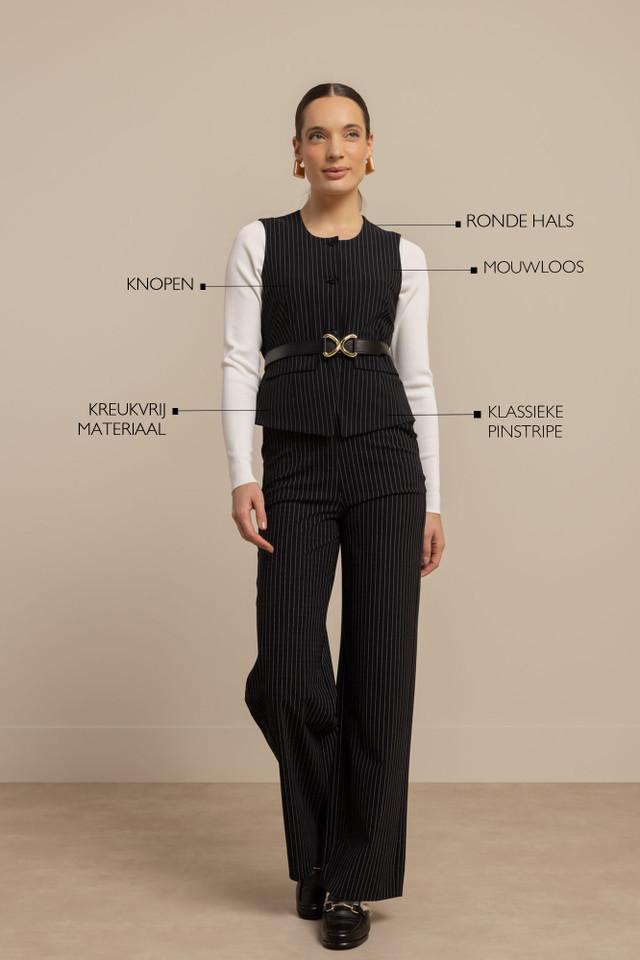 Maak kennis met de stijlvolle Rebekka pinstripe gilet van STUDIO ANNELOES. Dit zwarte gilet met subtiele off-white strepen is een must-have voor de modebewuste vrouw. Perfect voor de Nederlandse zomerse dagen, dit gilet voegt een vleugje elegantie toe aan elke outfit.