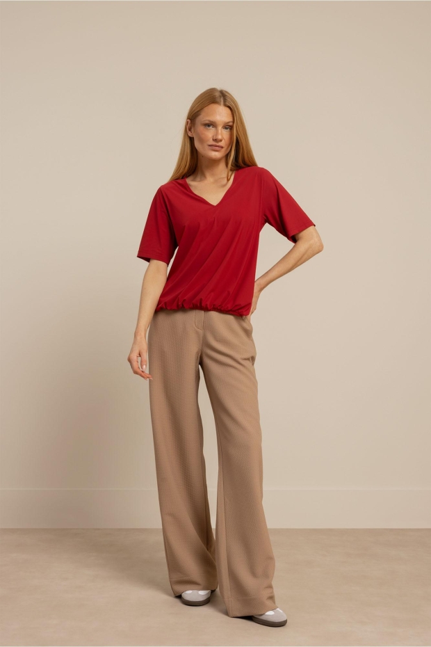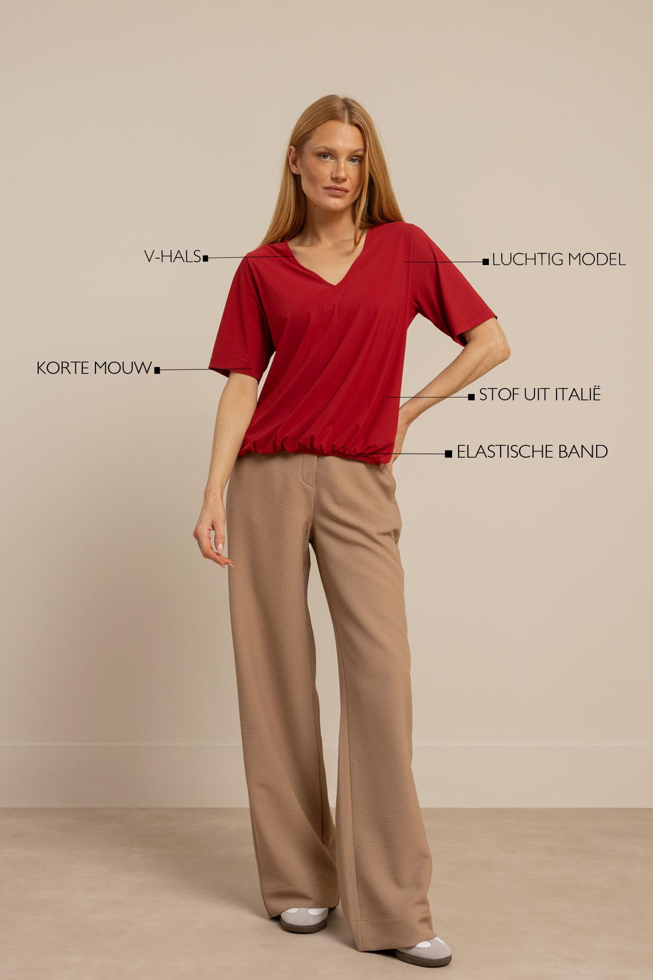 Maak kennis met de Vicky top van STUDIO ANNELOES, een stijlvolle toevoeging aan je zomergarderobe. Deze prachtige rode top met korte mouwen is perfect voor een zonnige dag in Nederland.