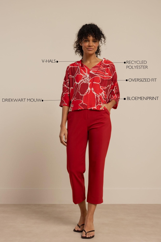 Verken de Eve flower top van STUDIO ANNELOES, een prachtige toevoeging aan je zomergarderobe. Deze stijlvolle top in een levendige rode tint is perfect voor zonnige dagen in Nederland. Combineer hem met een lichte jeans of een zomerse rok voor een frisse, modieuze look.