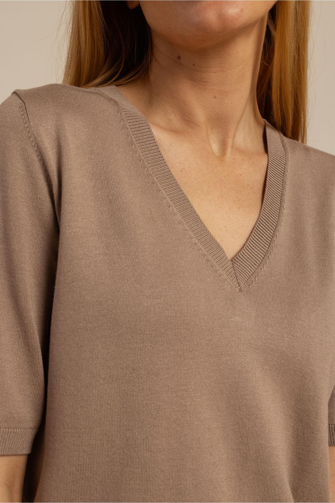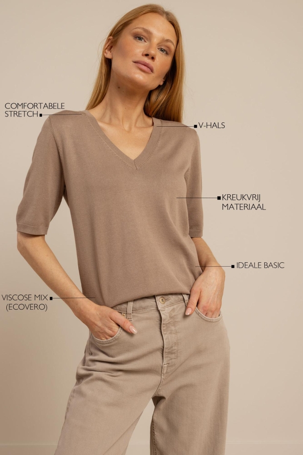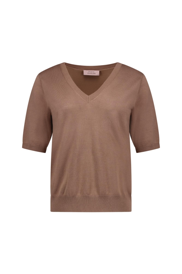 Maak kennis met de Truida pullover van STUDIO ANNELOES, een stijlvolle toevoeging aan je zomergarderobe. Deze zandkleurige trui met korte mouwen is perfect voor de Nederlandse zomerdagen en biedt een elegante en comfortabele look.