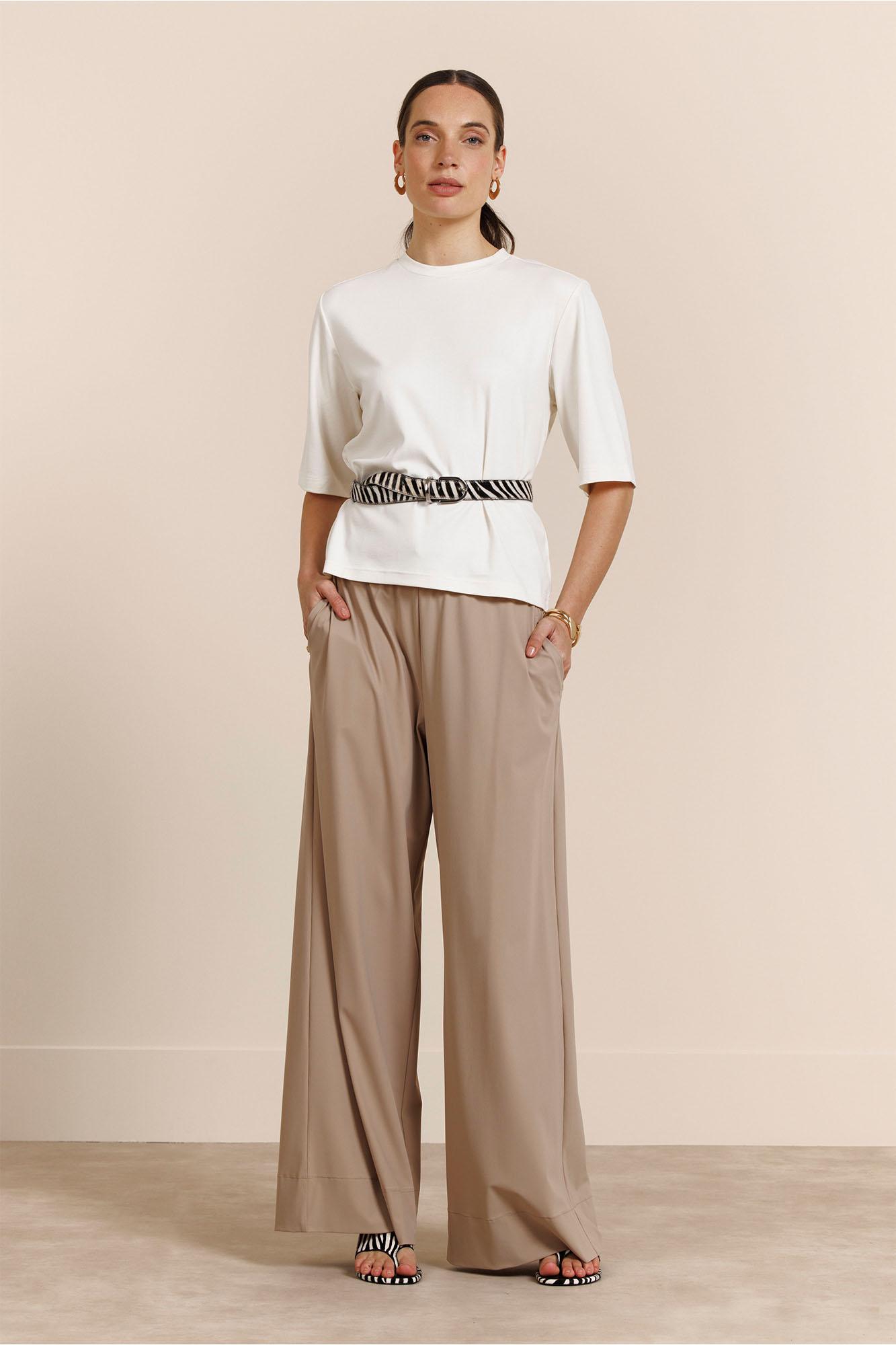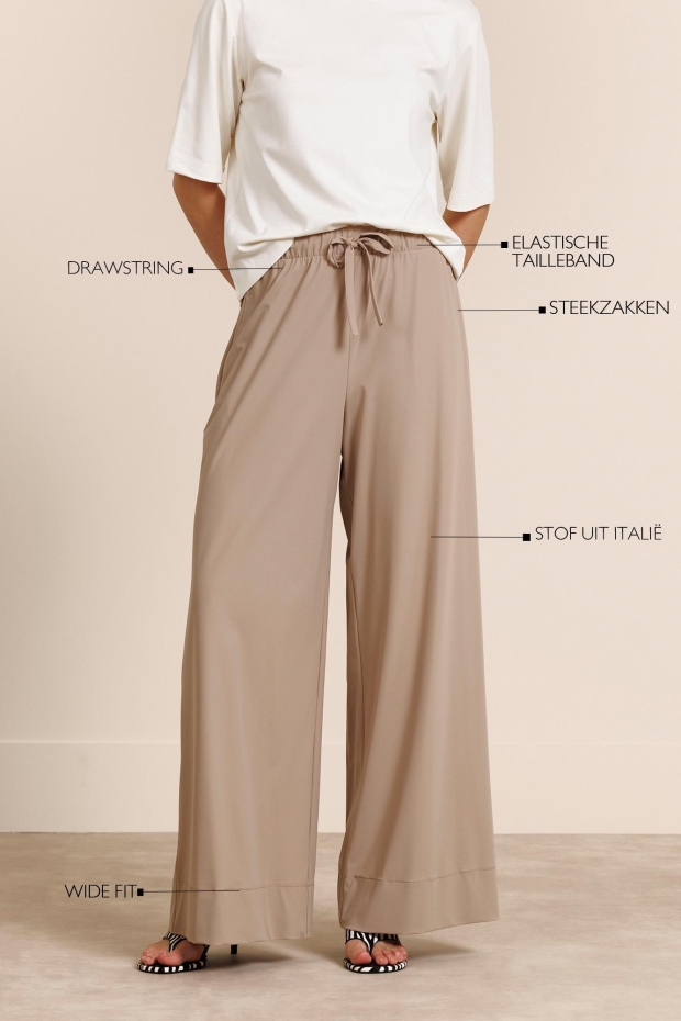 Ontdek de Grace trousers van STUDIO ANNELOES, een stijlvolle en veelzijdige damesbroek in een prachtige zandkleur. Perfect voor de Nederlandse zomers, deze broek combineert moeiteloos comfort met een modieuze uitstraling.
