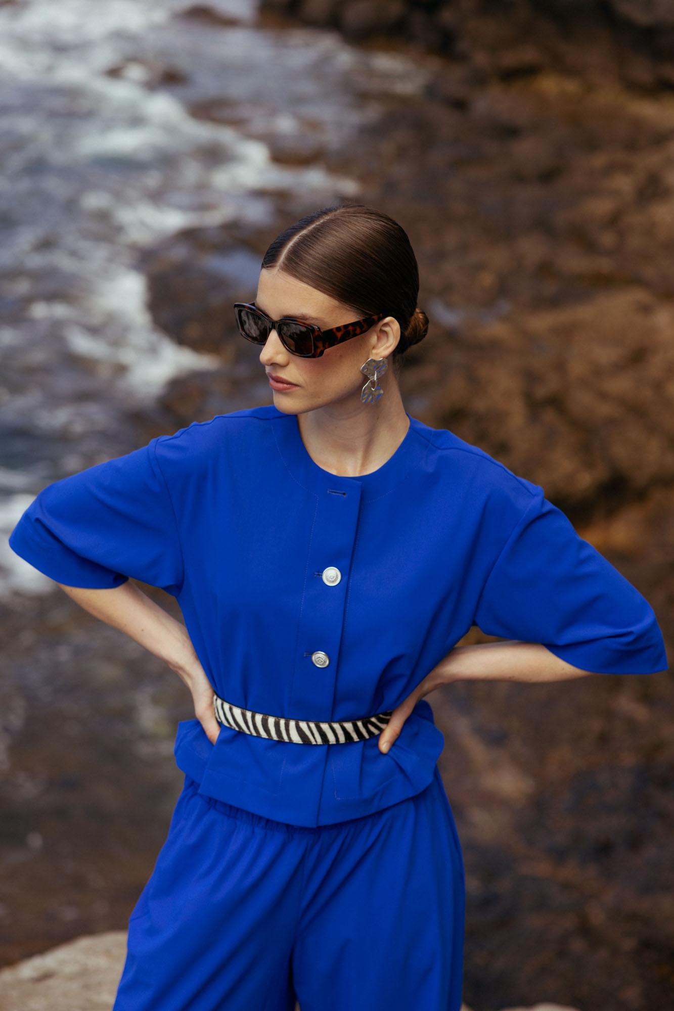 - Trendy elektrische blauwe kleur die je outfit laat stralen.