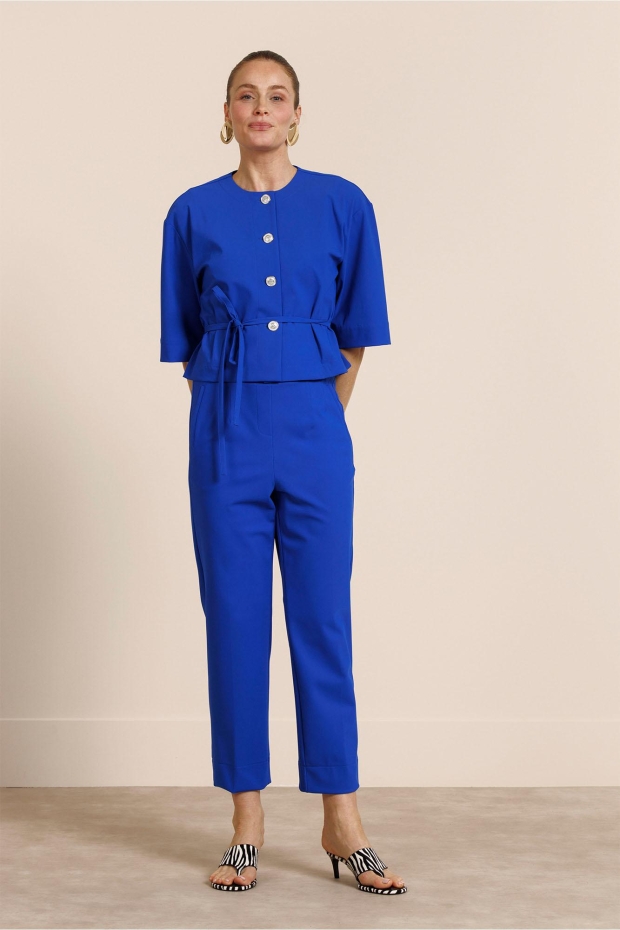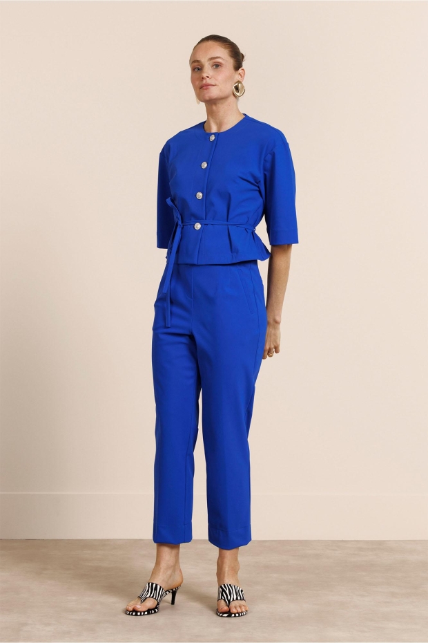 Ontdek de STUDIO ANNELOES Nada jacket in een opvallende elektrische blauwe kleur. Perfect voor de Nederlandse zomerdagen, deze damesjas combineert stijl en comfort moeiteloos.