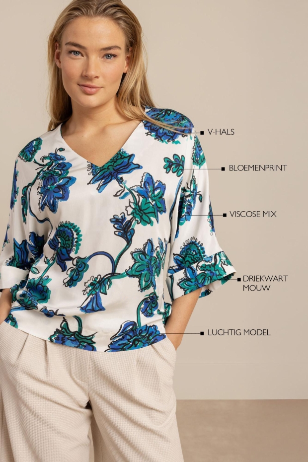 Studio Anneloes Madison flower top 13740 7372 electric blue/grass green