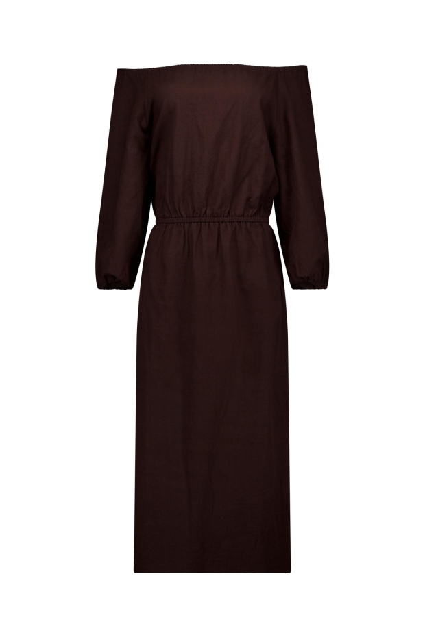 Maak kennis met de Saturday linen dress van STUDIO ANNELOES, een elegante donkerbruine jurk die perfect is voor de Nederlandse zomerdagen. Deze jurk in de kleur 'espresso' straalt klasse en comfort uit, ideaal voor een dagje in de stad of een zomerse avond uit.