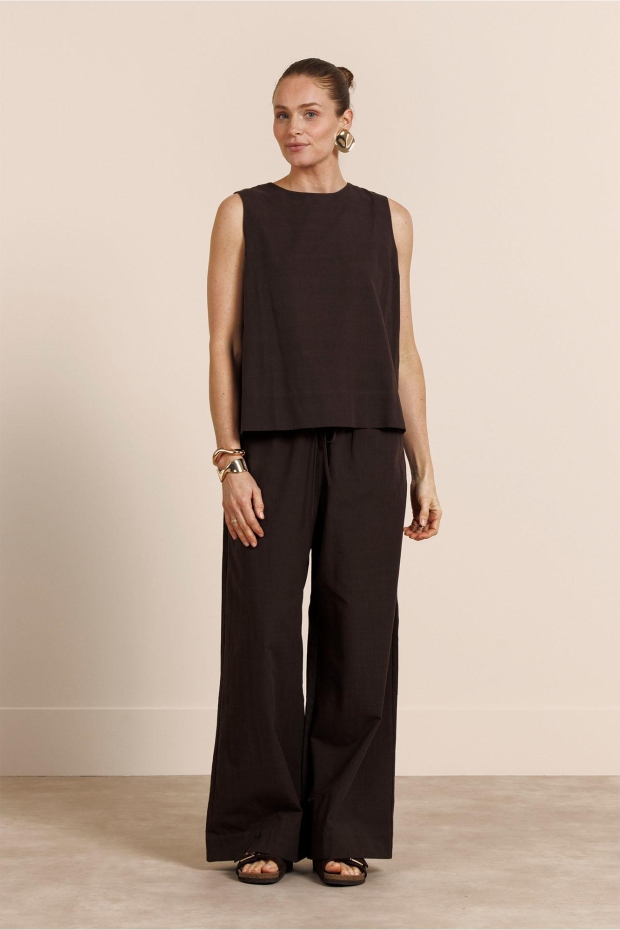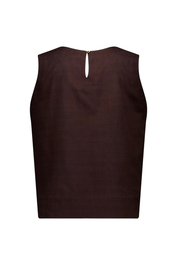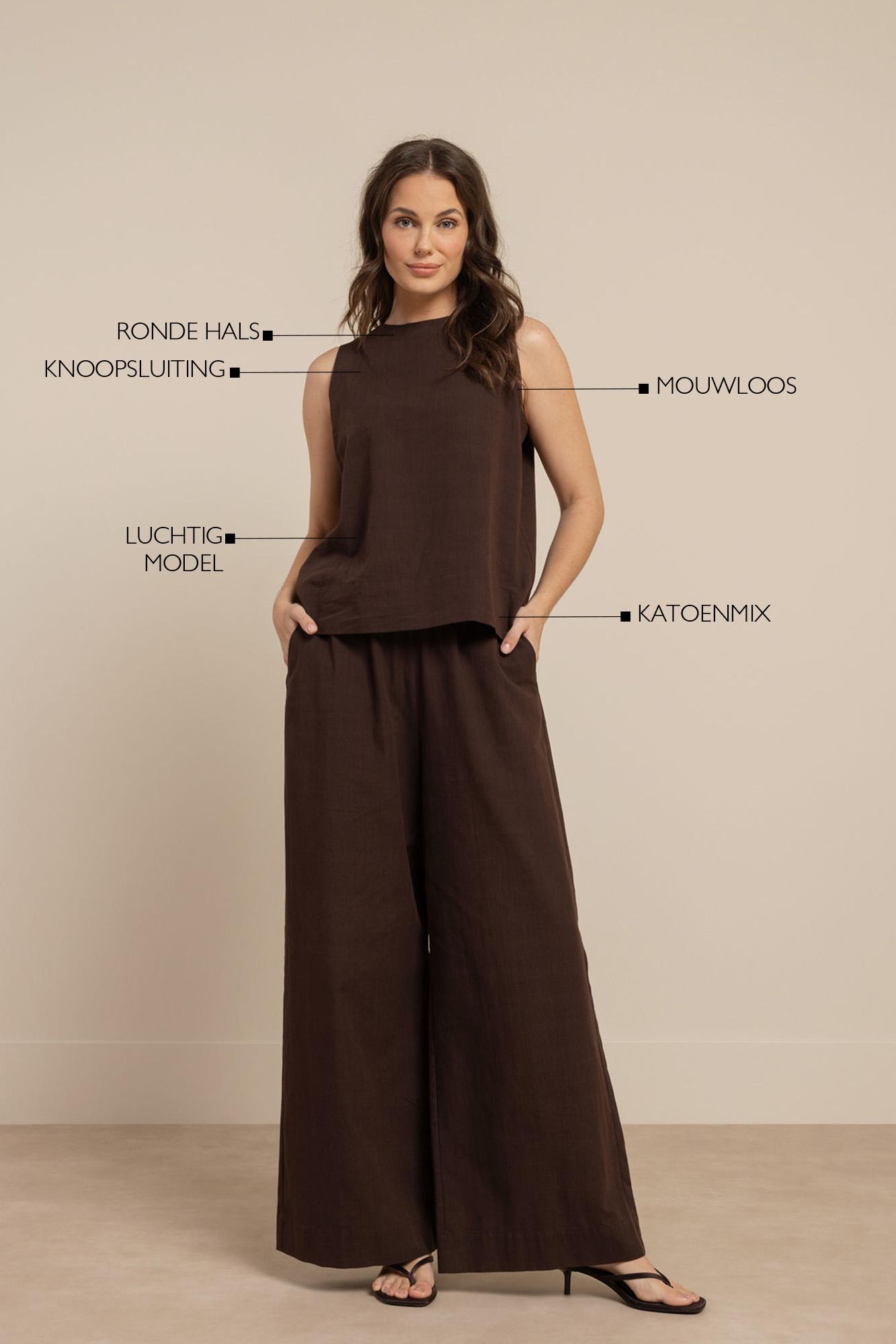 Maak kennis met de Gilian linnen top van STUDIO ANNELOES, een must-have voor je zomergarderobe. Deze donkerbruine top, ook wel 'espresso' genoemd, straalt elegantie uit en is perfect voor de warme maanden in Nederland.