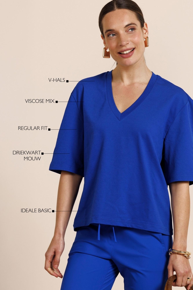 Studio Anneloes Fiore vneck t-shirt 13764 7301 electric blue