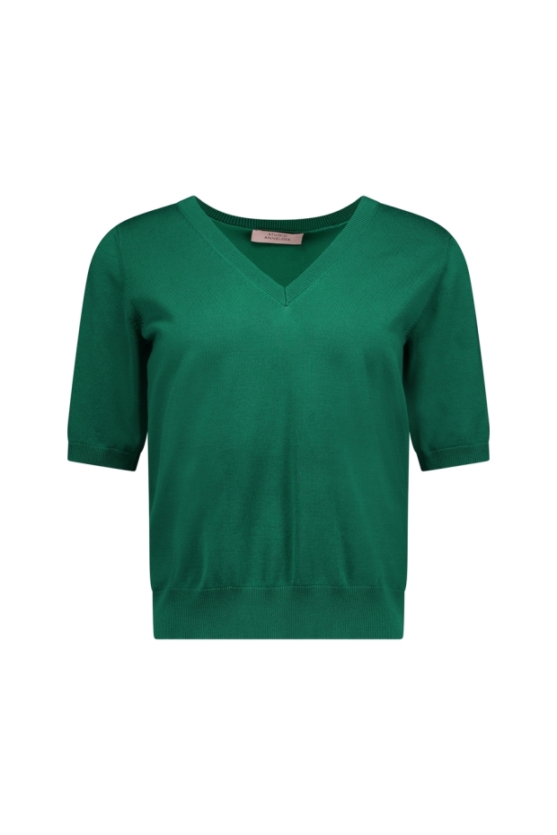 Ontdek de Truida pullover van STUDIO ANNELOES, een stijlvolle toevoeging aan je zomergarderobe. Deze groene trui met korte mouwen is perfect voor de Nederlandse zomers, waarin comfort en stijl hand in hand gaan.