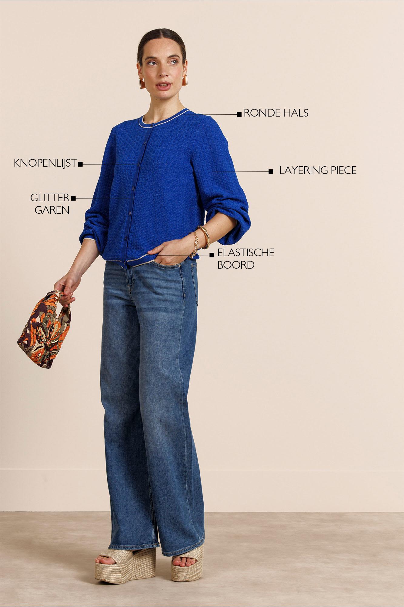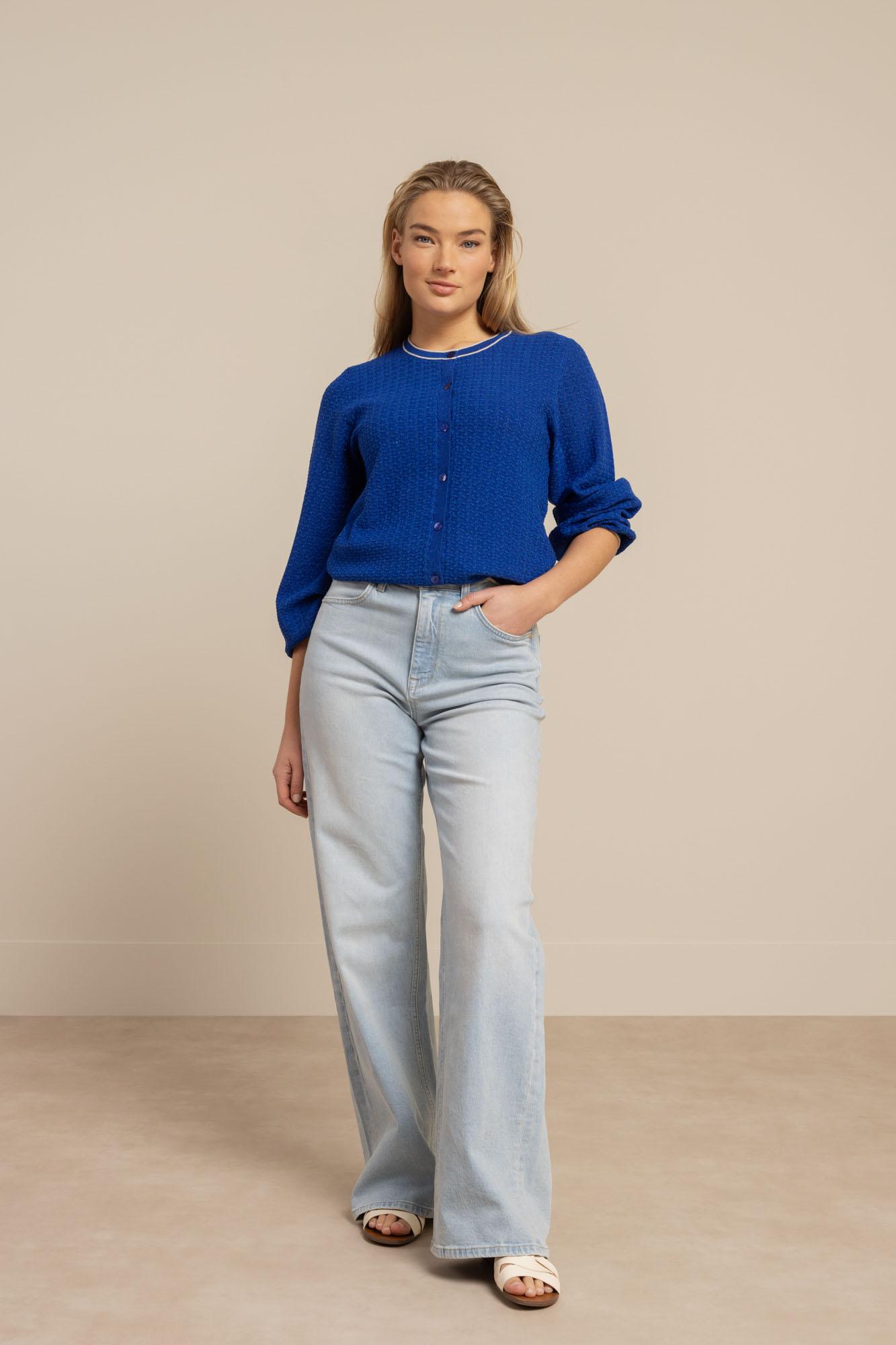 Verken de stijlvolle Jaxx twinset cardigan van STUDIO ANNELOES in een prachtige electric blue kleur. Perfect voor de Nederlandse zomerdagen, deze cardigan voegt een vleugje kleur en elegantie toe aan je garderobe.