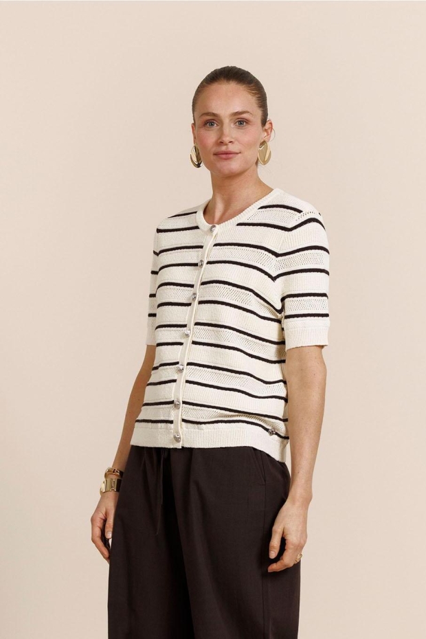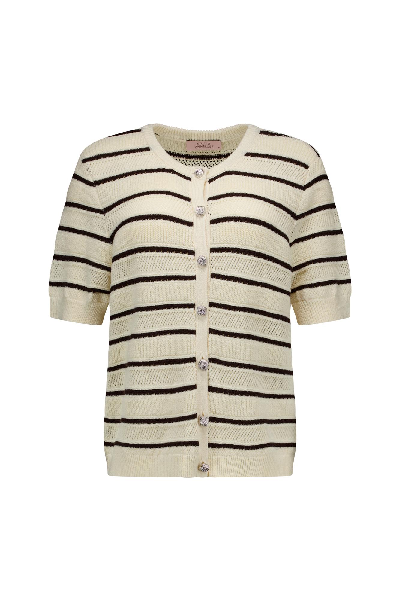 Studio Anneloes Yara stripe cardigan 13755 1787 ecru/espresso
