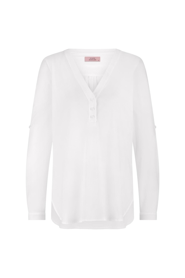 - Frisse witte kleur met een zachte V-hals voor een vrouwelijke look