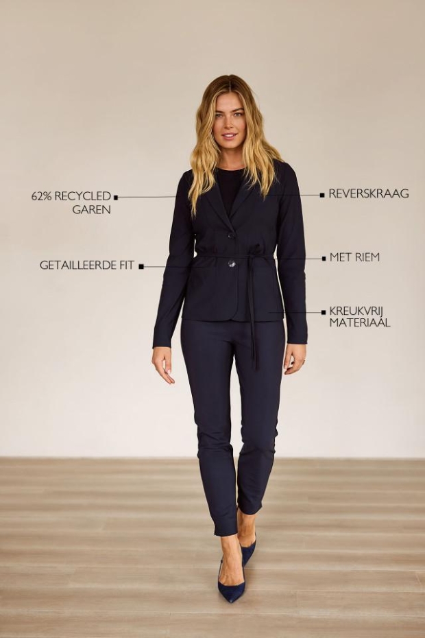 Maak kennis met de stijlvolle Clean blazer van Studio Anneloes in een prachtige donkerblauwe tint. Deze blazer is perfect voor dames die op zoek zijn naar een combinatie van comfort en elegantie.