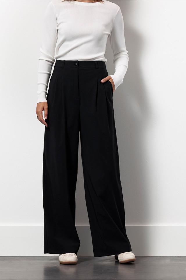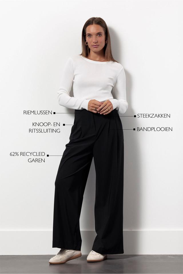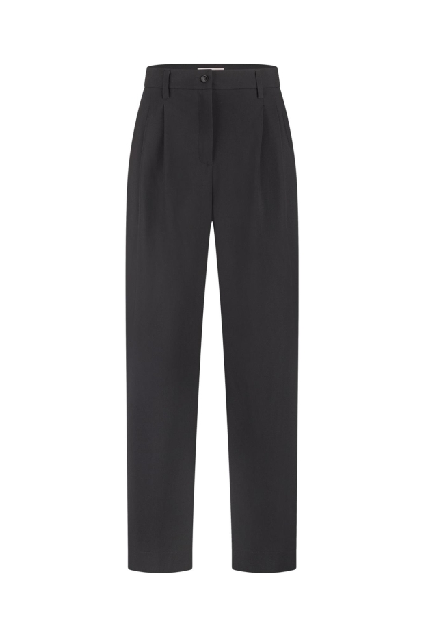 Maak kennis met de stijlvolle en veelzijdige Scout trousers van Studio Anneloes. Deze zwarte broek combineert elegantie met comfort, waardoor hij perfect is voor zowel kantoor als casual gelegenheden. Met subtiele plooien die verwijzen naar traditionele tailoring, biedt deze broek een moderne en comfortabele pasvorm.