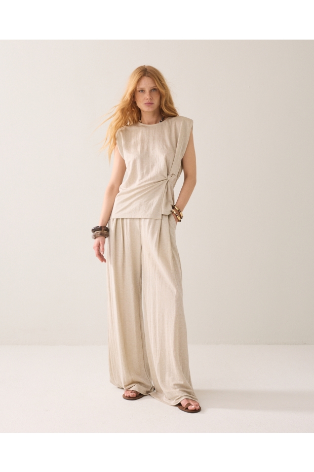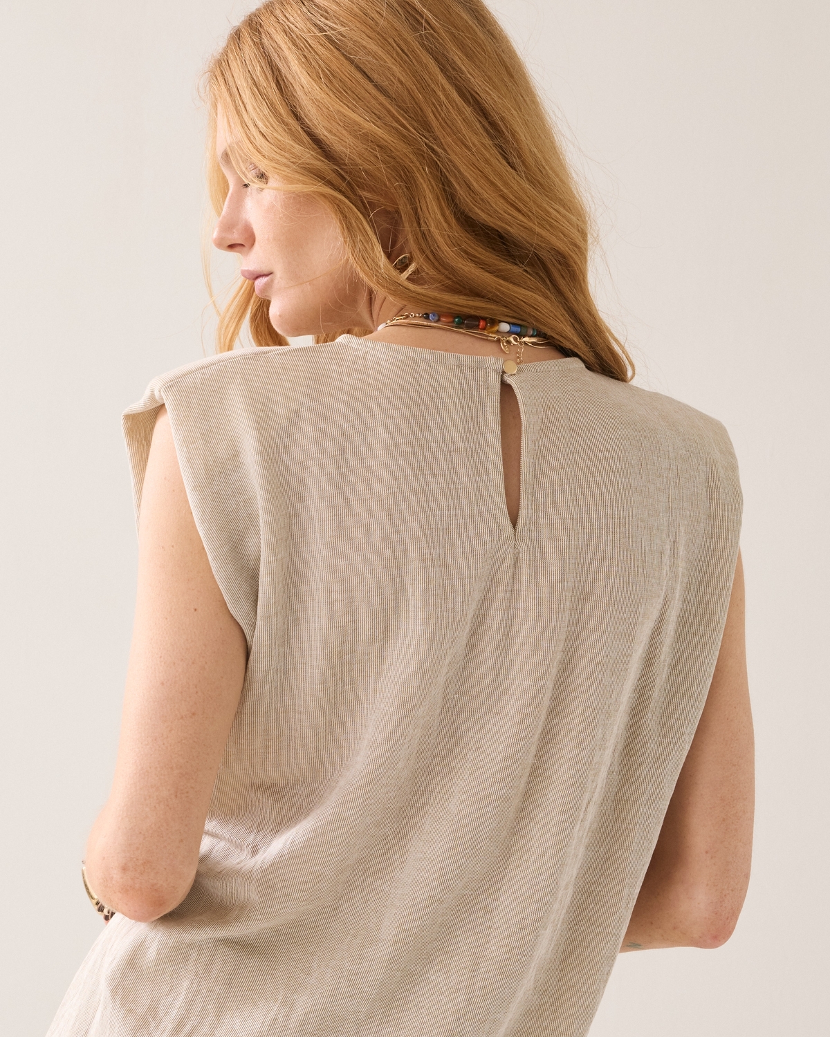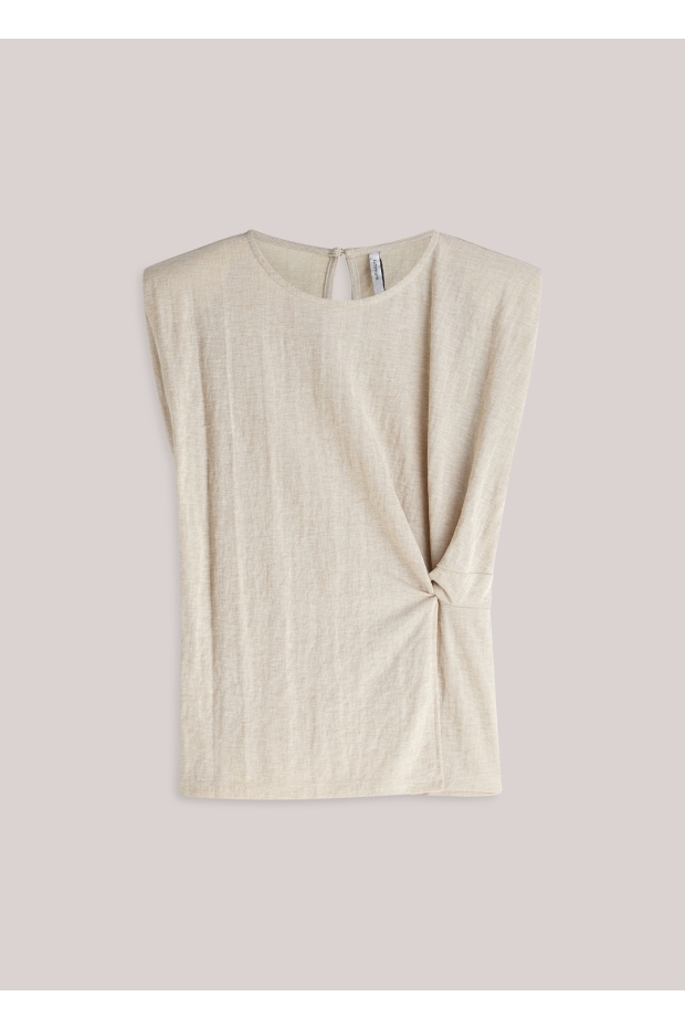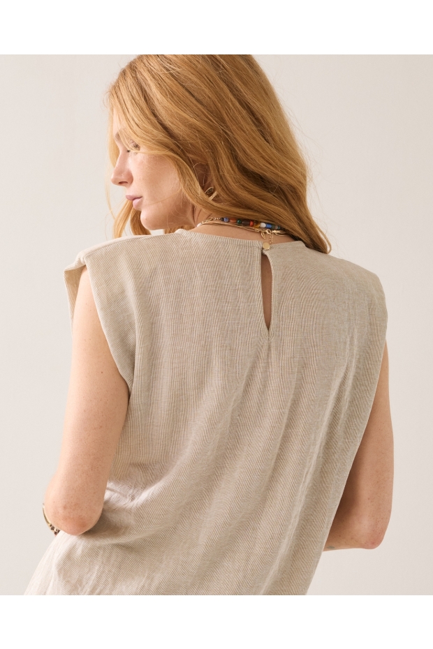 Verken de stijlvolle en luchtige Top Linen look van SUMMUM, perfect voor de Nederlandse zomerdagen. Deze beige top met korte mouwen is een must-have voor elke modebewuste vrouw.