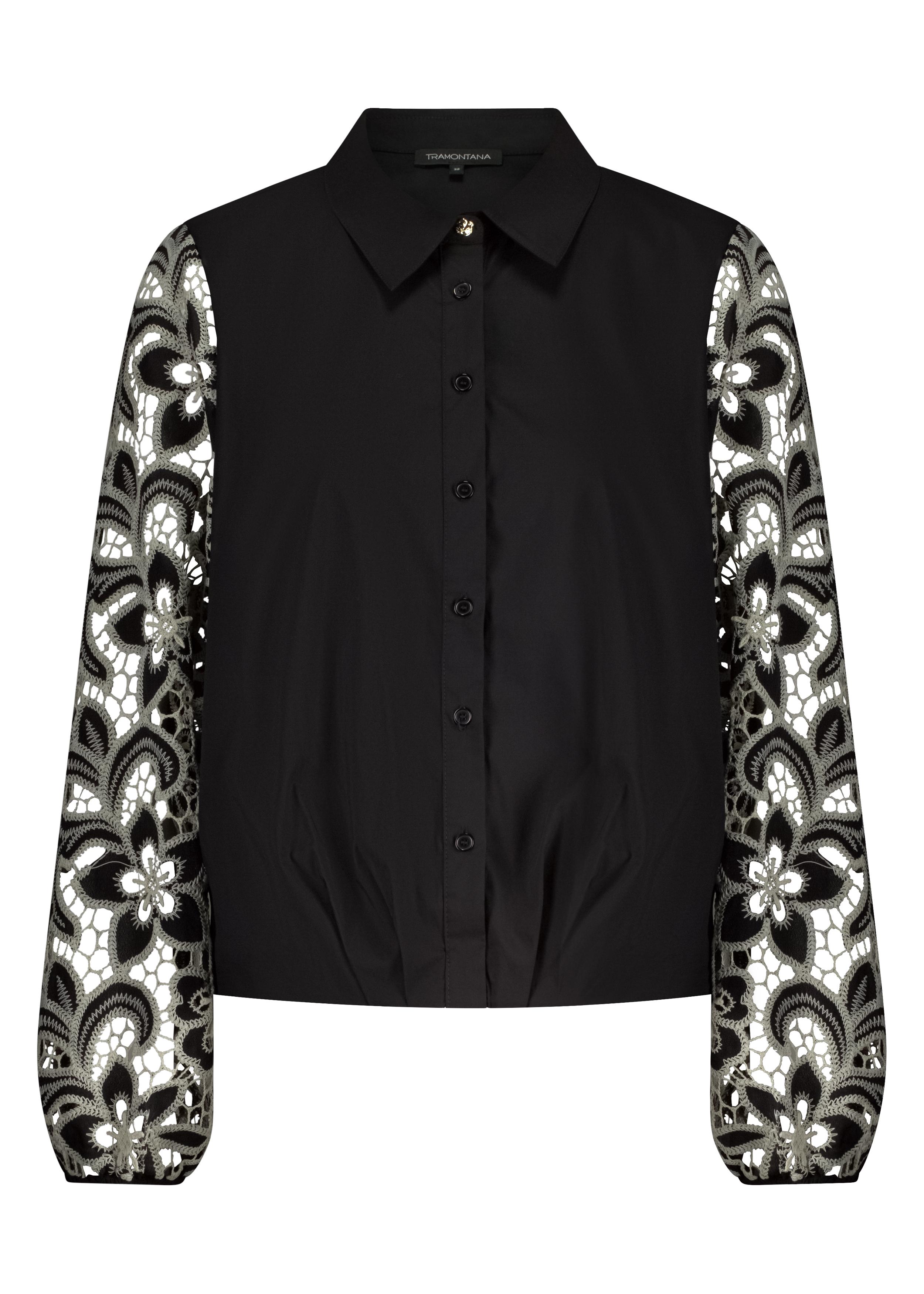 Maak kennis met de elegante Embroidered Sleeve Blouse van Tramontana. Deze prachtige damesblouse in stijlvol zwart is perfect voor de wintermaanden en voegt een vleugje verfijning toe aan je garderobe. De subtiele borduursels op de mouwen geven een unieke en modieuze uitstraling.