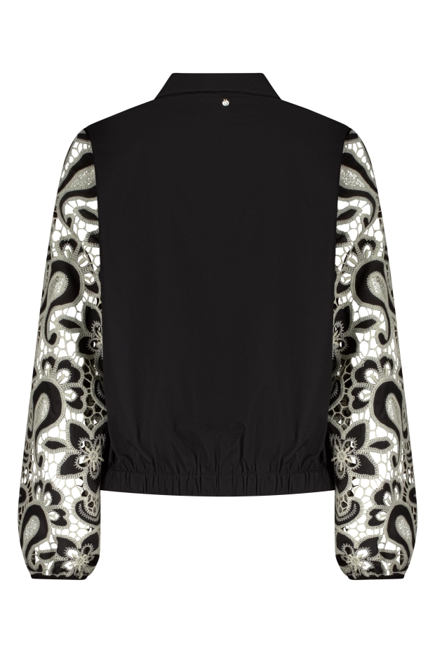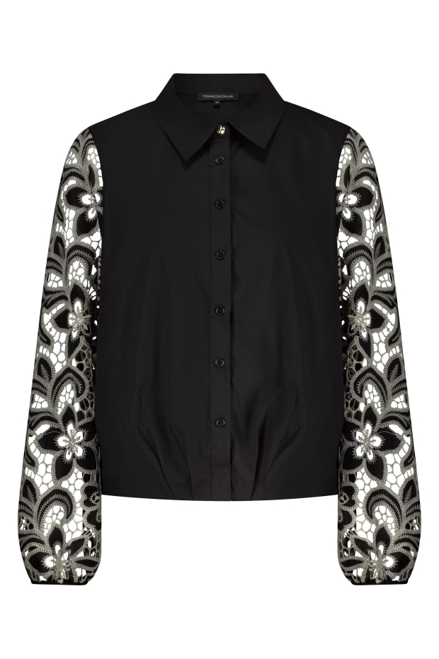 - Stijlvolle zwarte blouse met geborduurde mouwen
