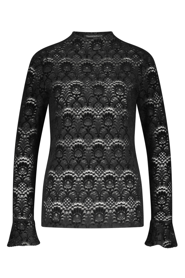 Maak kennis met de elegante Flared-Sleeve Brushed Lace Top van tramontana. Deze zwarte top is perfect voor de modebewuste vrouw die op zoek is naar iets speciaals voor de winter. Ideaal voor een avondje uit of een stijlvolle dag op kantoor. Combineer het met een strakke broek of rok voor een verfijnde look.