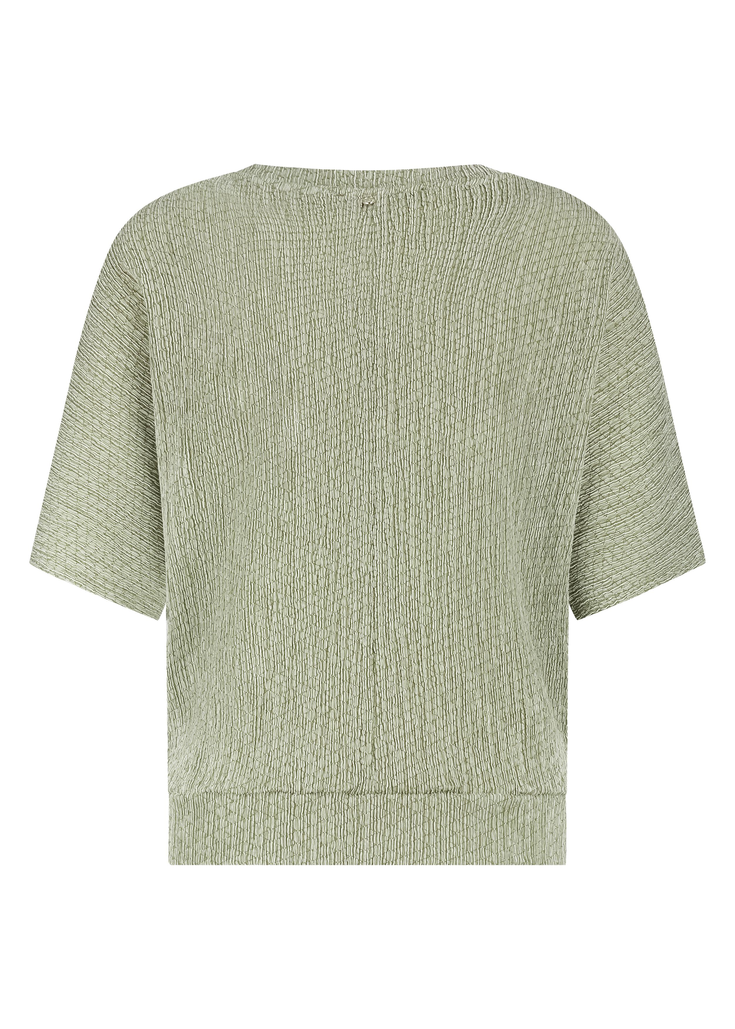 Maak kennis met de TRAMONTANA Crinkled Top in een prachtige groene tint, perfect voor de zomerse dagen in Nederland. Dit dames T-shirt met korte mouwen is een stijlvolle toevoeging aan je garderobe.