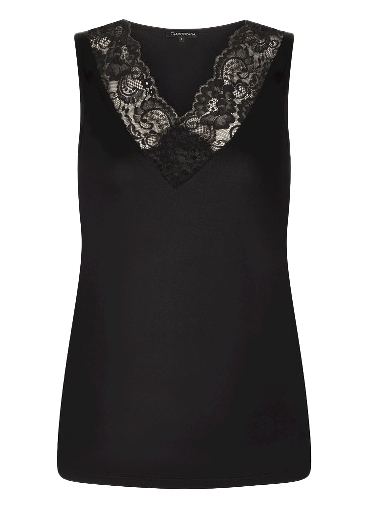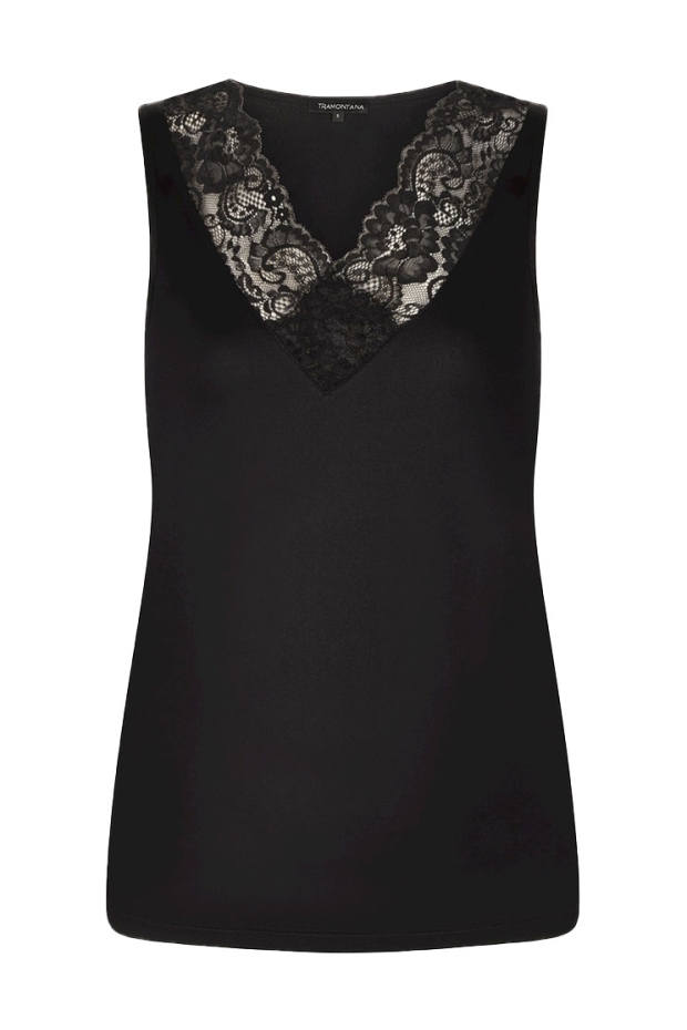 Ontdek de perfecte combinatie van stijl en comfort met de PIPPA NOS Basic Top V-Neck Lace in tijdloos zwart van TRAMONTANA. Deze elegante top is een must-have voor elke garderobe en biedt een veelzijdige basis voor zowel casual als chique outfits.