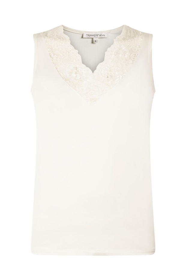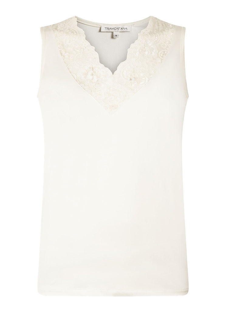 Ontdek de perfecte combinatie van stijl en comfort met de PIPPA NOS Basic Top V-Neck Lace van TRAMONTANA in de elegante kleur Off White. Deze top is een tijdloze aanvulling op elke garderobe en is ontworpen om je zowel overdag als 's avonds een gevoel van verfijning en gemak te bieden.
