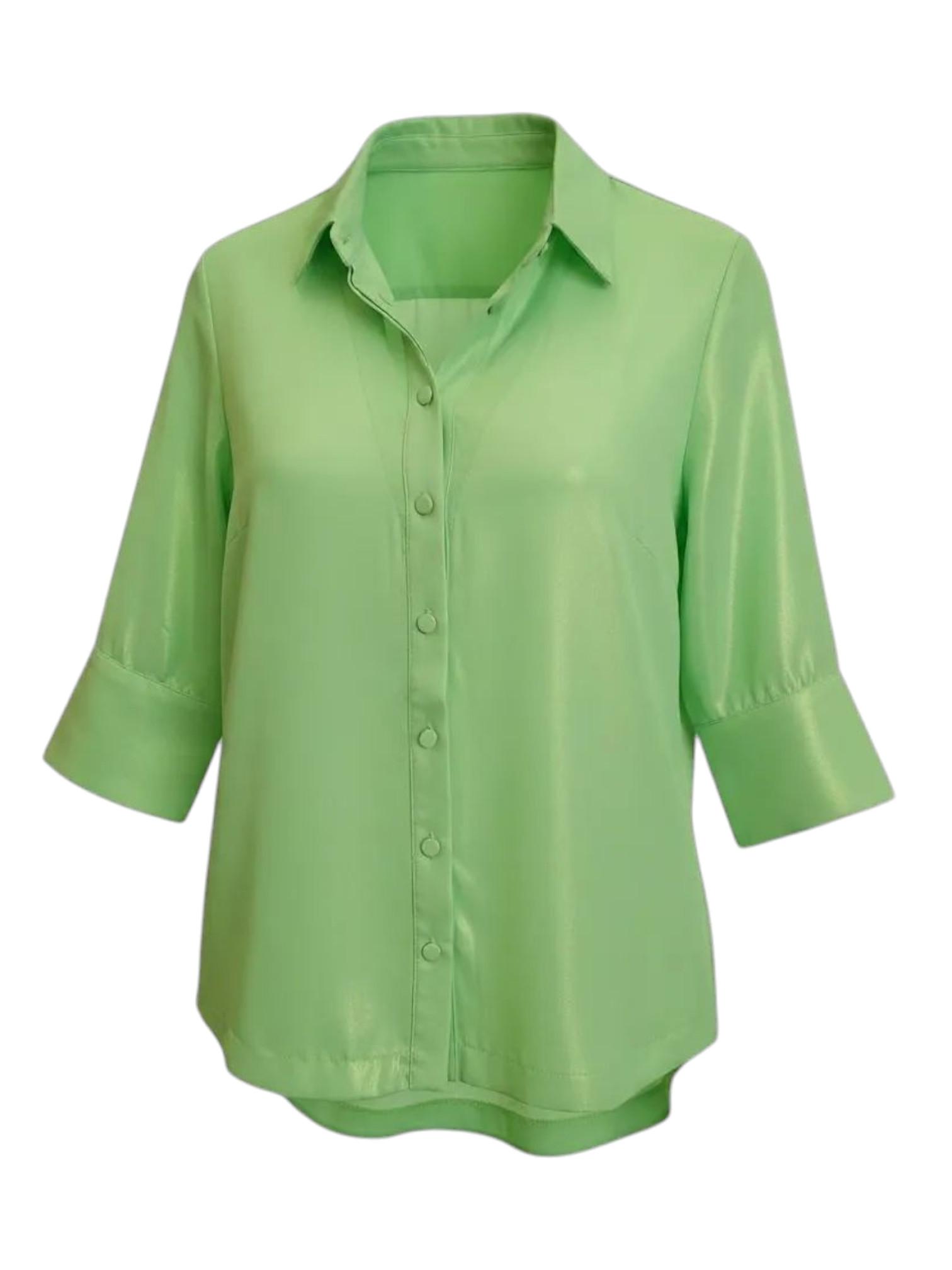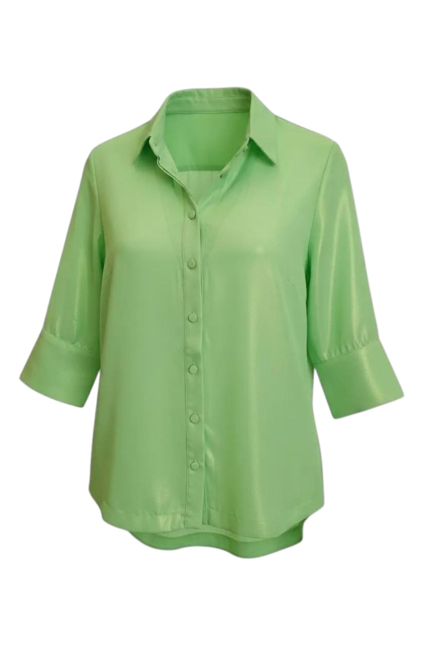 Maak kennis met de stijlvolle ZIP73 blouse in een prachtige metallic mint kleur. Deze damesblouse is perfect voor de modebewuste vrouw die houdt van een unieke look. Ideaal voor de wintermaanden, deze blouse voegt een vleugje glamour toe aan je garderobe. Combineer het met een donkere jeans voor een chique uitstraling tijdens een avondje uit of draag het naar kantoor voor een modieuze twist.