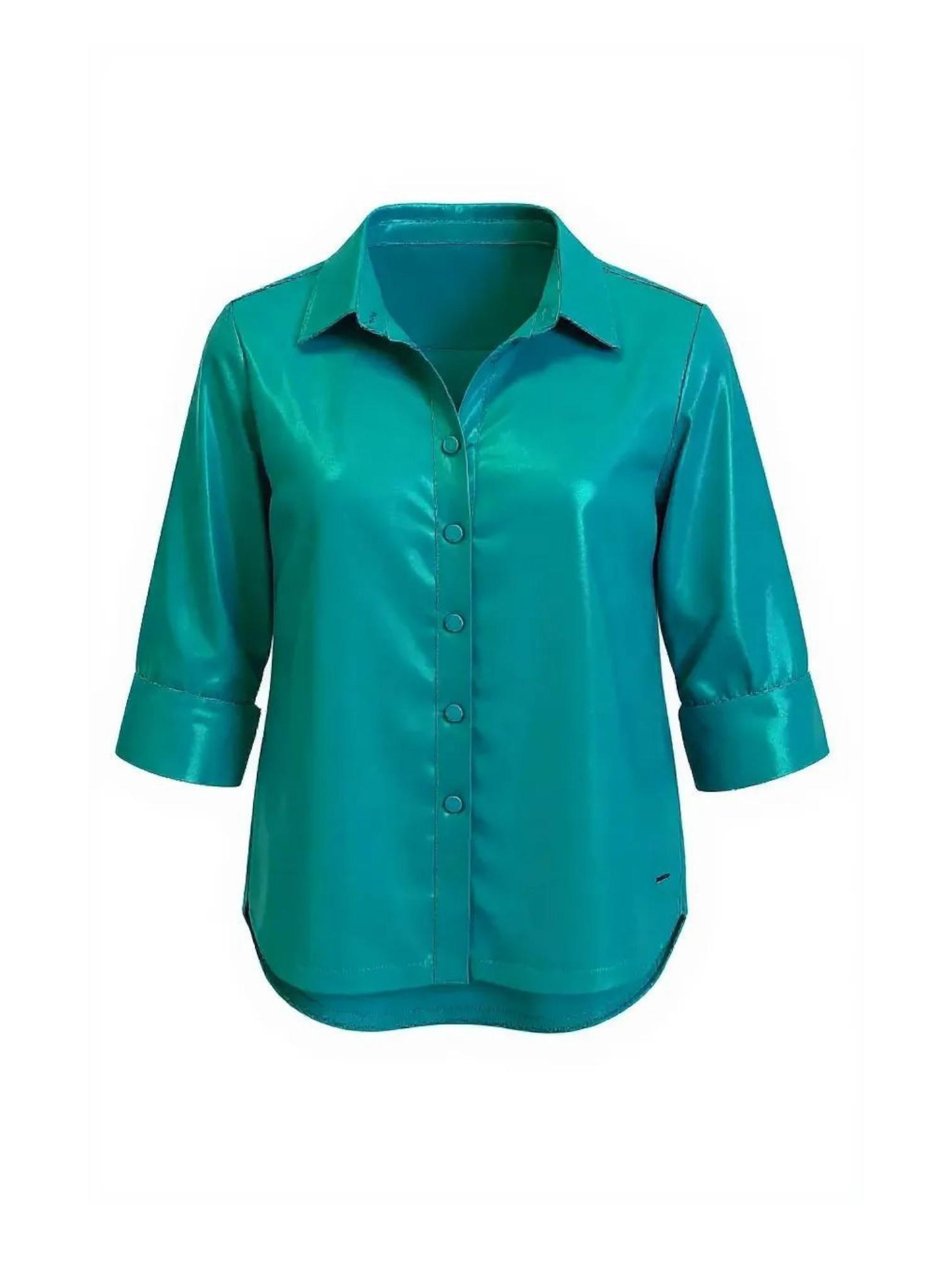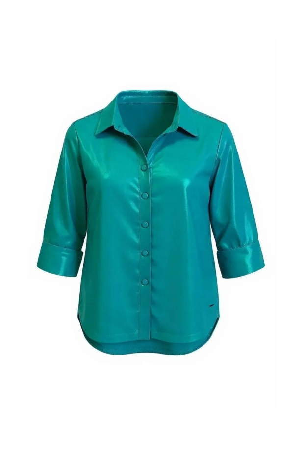 Maak kennis met de stijlvolle ZIP73 blouse in een prachtige metallic aqua tint. Deze damesblouse is een perfecte keuze voor de modebewuste vrouw die graag een statement maakt. Ideaal voor een frisse ochtendwandeling langs de grachten of een chique avondje uit. De blouse is ontworpen voor de wintermaanden, waardoor je er ook tijdens de koudere dagen modieus uitziet.
