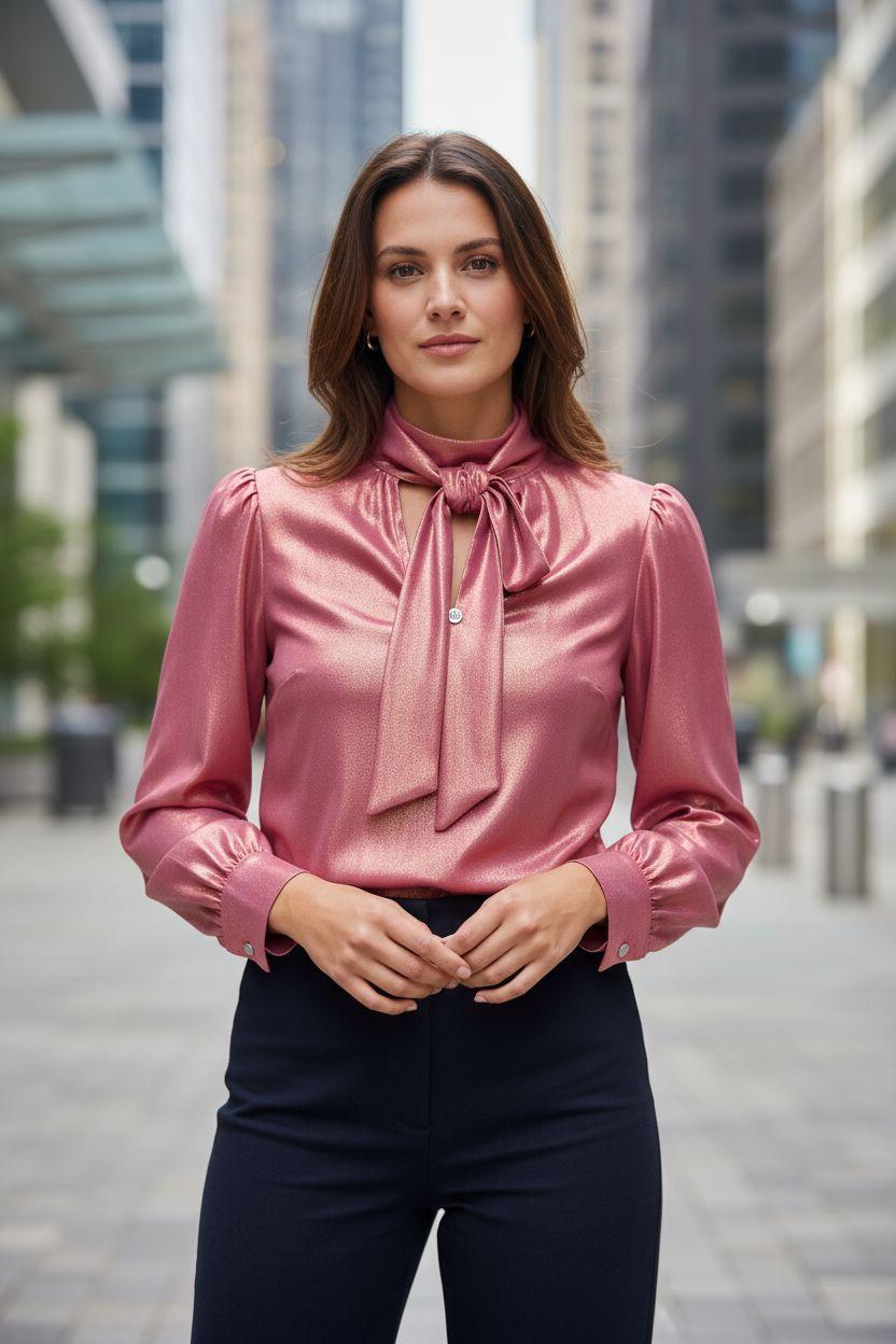 Maak kennis met de ZIP73 Twisted Collar Blouse in een prachtige metallic koraalkleur. Deze blouse is een stijlvolle toevoeging aan je wintergarderobe en perfect voor zowel werk als een avondje uit. De unieke kraag en de verfijnde kleur maken het een echte blikvanger.